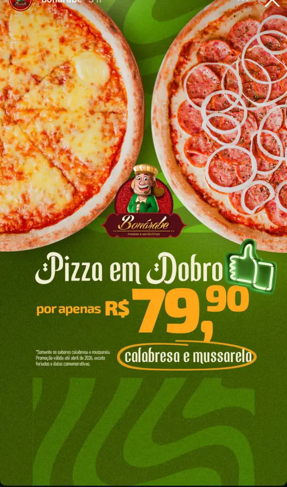 Pão, alface, tomate, 2 hambúrgueres de 100g cada, queijo e bacon. 01 Sanduíche Bonárabe 01 Batata Frita 01 Copo de refrigerante 300ML