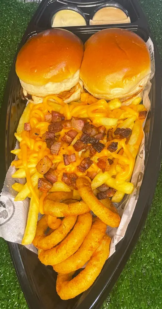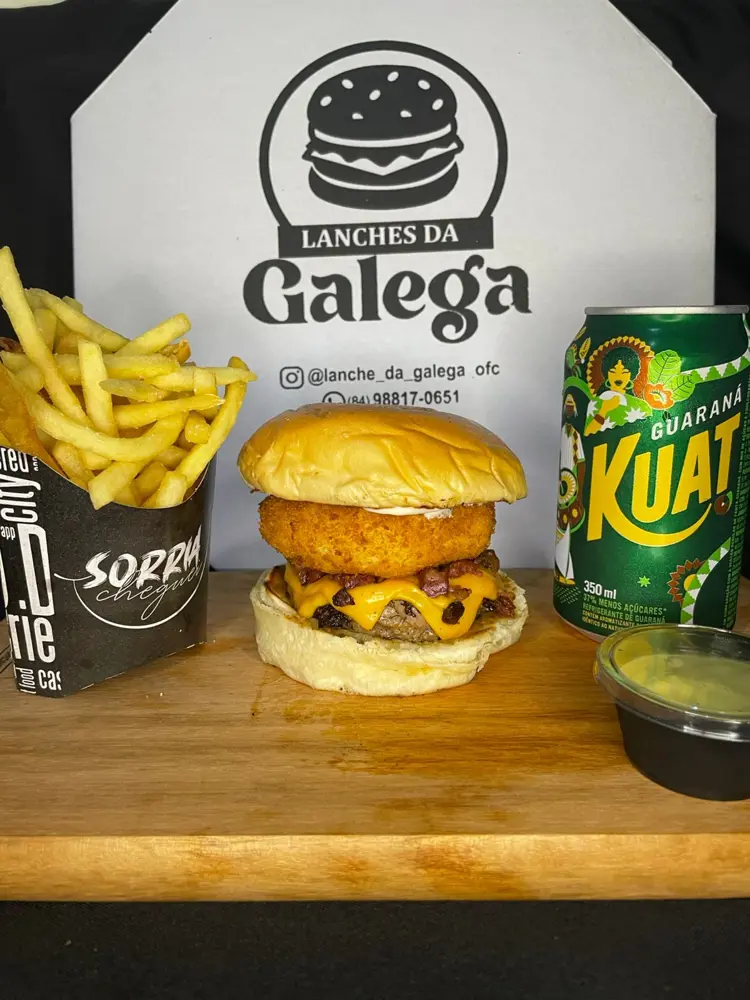 PÃO DE BRIOCHE, CARNE ARTESANAL, BATATA, QUEIJO MUSSARELA, BACON E MOLHO ESPECIAL.
