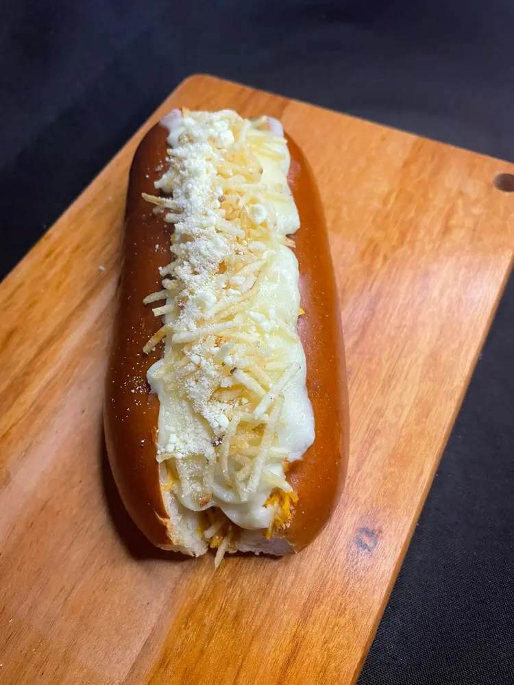 Pão, salsicha, Frango, bacon, milho , catupiry original , queijo ralado e muçarela e batata palha