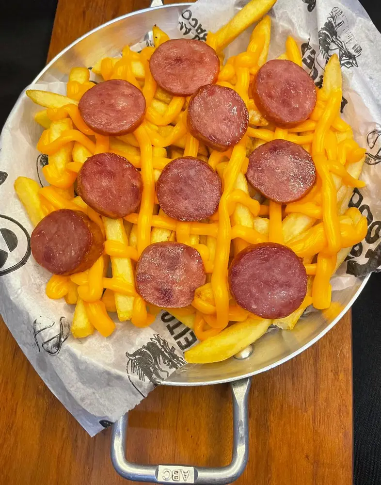 02 BAURUS, BOLINHA DE QUEIJO , SALGADOS, CALABRESA E BATATA FRITA.